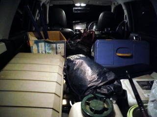 昨年同様、欲を出して3カ所を巡る計画。荷物もゴムボートあり、風呂桶あり、クーラーボックスは3つ用意と思いつくままに積んで夜中の1時半出発です。
