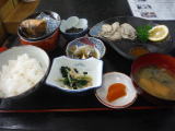 昼は民宿ちどりの岩がき定食1800円。それなり。