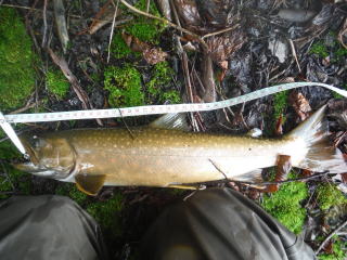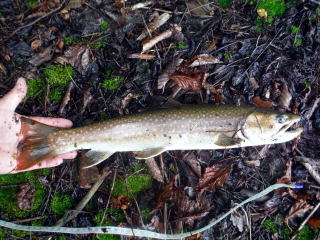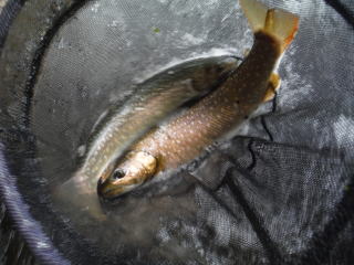 とあきらめていたら、ナメの途中にイワナが!!2尾ゲット。釣ったのではなく網ですくいました。26センチと29センチです。