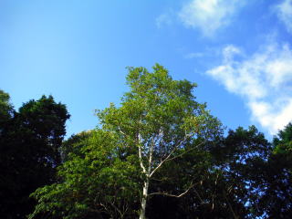 車まで帰ってくるともう台風一過で青空です。白樺と青空のコントラストがとてもきれいです。