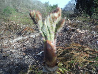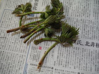 例年、昭和村のコゴミは5/3前後。今年は桜満開の時期が一週間前倒しになっています。