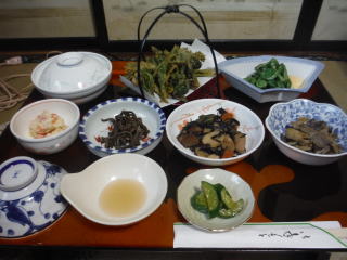 お昼はやまか食堂、そして夕方は待ちに待った中島屋での夕食です。ハリギリ、タラノメ、アイコ、コゴミの天ぷら、ゼンマイ、マイタケ・・・。そして、骨酒。