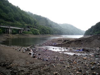 次に向かったのは田子倉湖の流れ込み。こちらもルアーで大物を狙いましたが全然だめ。挙げ句の果てに流木にお気に入りのルアーを引っかけてしまいました。