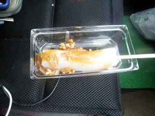 ダムサイトで休憩。売店で味噌おでん120円購入。クルミがまぶしてあり、とってもおいしいです。
