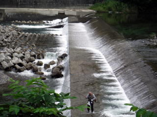 伊奈川は水量も多く、とても川らしい川です。鮎釣り師が何人かいました。