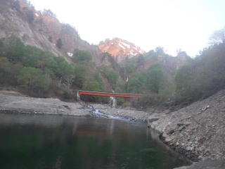 4時半には只見沢の駐車場で準備を始めました。2組がもう現場に向かっていて焦りましたが、仕方ないので対岸で始めることにしました。