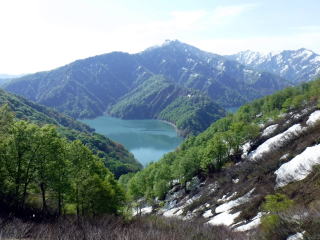天気もよく、田子倉湖周辺は残雪と新緑と青空が調和してとてもきれいです。心が癒やされます。