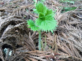 アイコとウドを少しばかり採り、ついでに野尻川で竿も出しましたが、放流イワナと思われる24㎝のイワナ一尾。