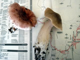 とりあえず、間違いのないサクラシメジと一本シメジをまっちゃんが見つけました。イッポンシメジはエリンギのように茎が太いです。