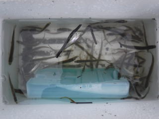 大正解でした。ワカサギが通るところの底に網を用意しておいて、通った瞬間、すかさずあげる。漁師魂に火がつきました。楽しいです。これでエサにするワカサギは十分確保できました。