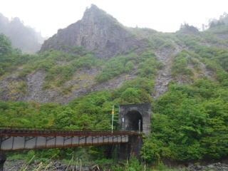 なかなか雨がやみません。只見線を撮るためにカメラを構えてる人がいたので、自分も写真を撮ろうとカメラを構えて、トンネルから出てくる列車を待っていたのですが、ちょっとした隙に2両の列車なのですぐ通り過ぎてしまいました。