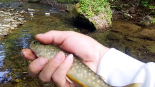 続いて、栗駒山に向かう途中にあった成瀬川上流の沢、こちらは駐車スペースから沢筋を200メートルほどつり上がりました。