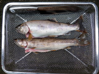 昨日釣った魚は昨日のうちにさばいておいたので尺ヤマメだけさばきました。