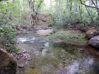 今回、沢の水量、流れ込みの筋などを考えて、前回の場所より50メートルほど橋に近い位置です。