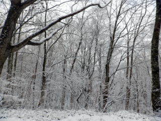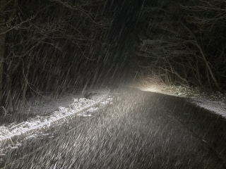 そのうちやむだろうと思いながら標高を上げてゆくと、なんと雪に変わりました。しかも本降りです。