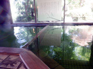黄緑色に輝く湯面、さらっとした感じで薄すぎず濃すぎずの硫黄臭