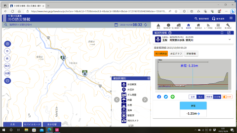 「水位」に関しては国土交通省の「川の防災情報」を参考にしているのですが、最近バージョンアップして野尻川の中流域の