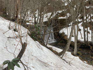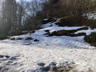 2か所目のポイントへ移動。ここはほとんど知られてない場所なのですが、残雪にしっかり足跡が残っていました。