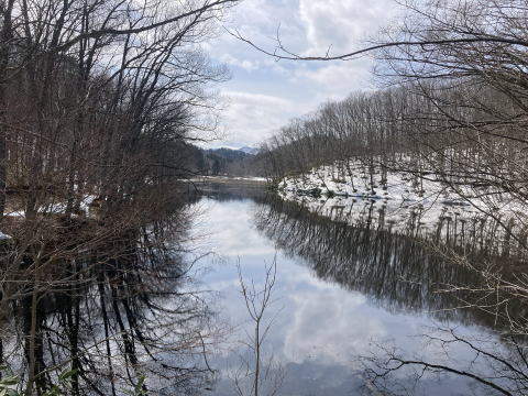 そのあと野尻川のあちこちのポイントをまわりましたが、まだ魚の活性は低いよう(腕が悪い)で全く釣れません。