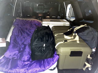 本日は久しぶりの車中泊です。近年は寝袋2枚重ねて寒さに耐えて寝ていたのですが、一枚でも暑いくらいの陽気です。