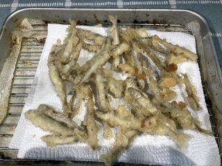 夕飯のおかずはワカサギの天ぷら、コゴミのマヨネーズ醤油和えをとりあえず作りました。ワカサギ絶品でした。