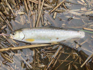 これはだめかと思ったときに小さなウグイがやっと釣れ、その後2時間で4匹確保できました。