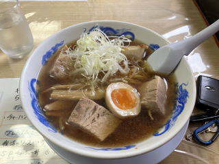 お昼は大塩温泉(すばらしい)に入った後、会津横田の「ひょっとこ亭」というお店で、一押しのゴロチャー麺を食べました。