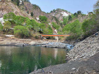 橋からバックウォーターを眺めると、右岸、左岸とも釣れそうです。