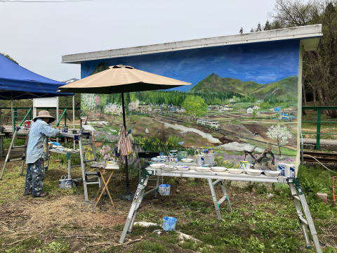 助手とかいると思いましたが、あの大きさを一人で描いているのにはびっくりしました。